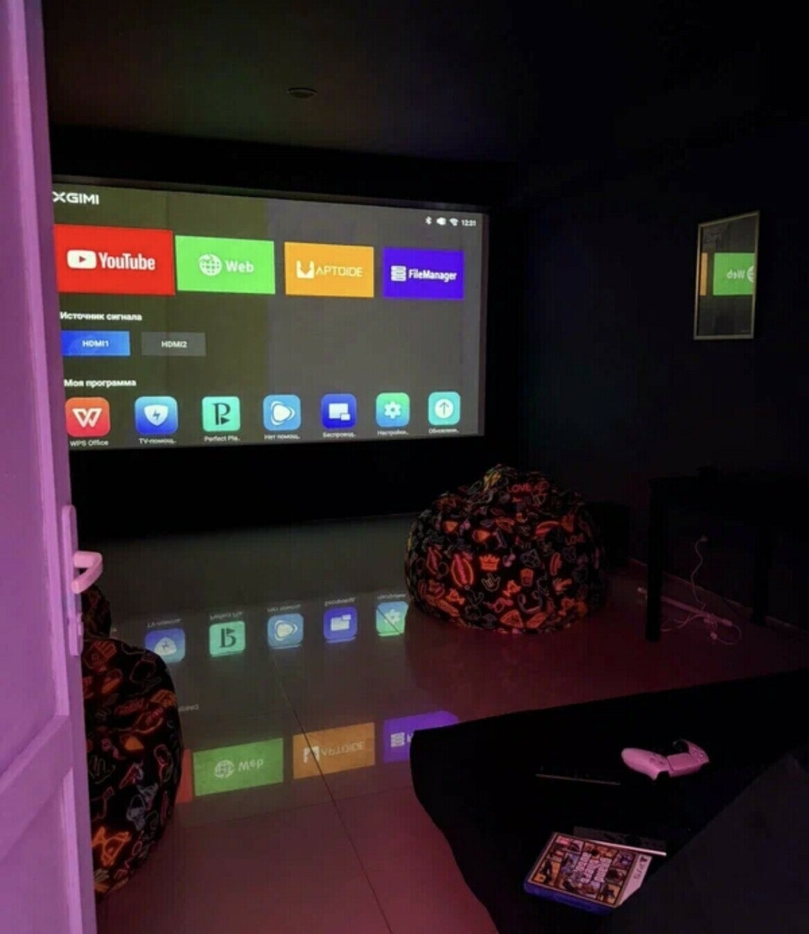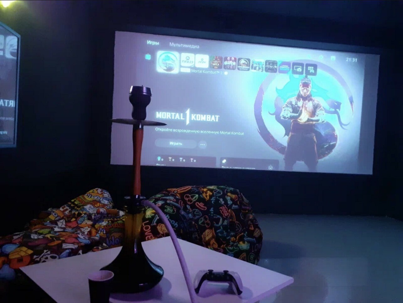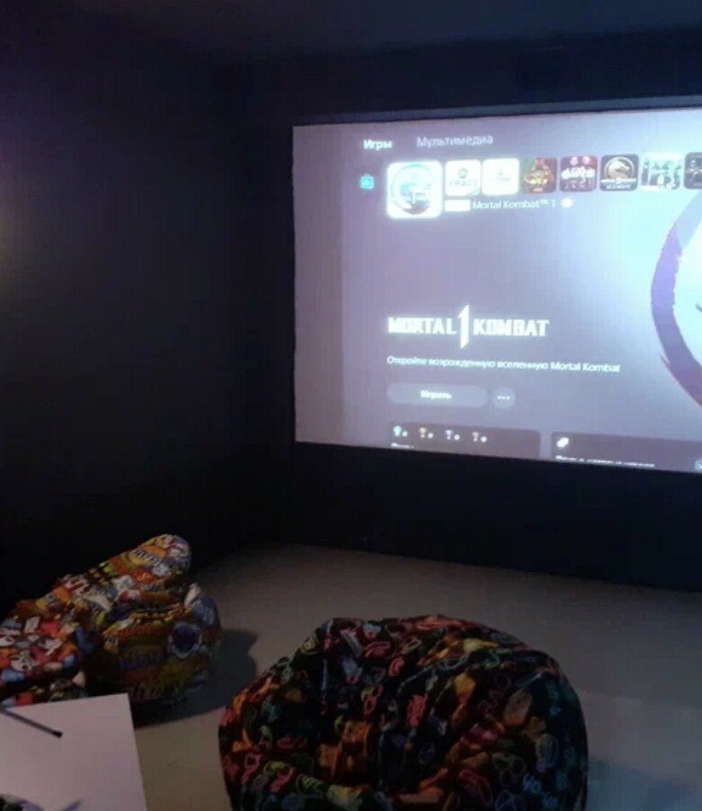 Масштаб проекторов: Хотите больше, чем просто телевизор? Наши VIP-кабины оснащены огромными кинопроекторами — это совершенно иной опыт погружения в игру.