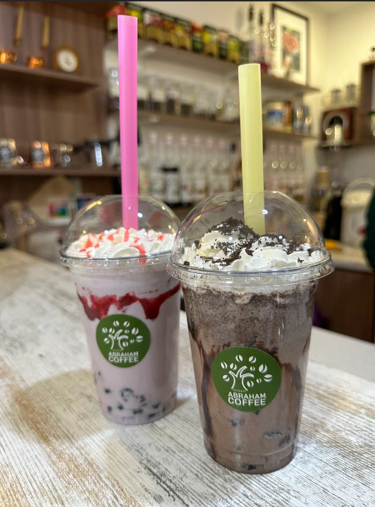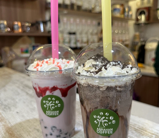 Кофейня Abraham — это уютное место с красивым входом и продуманным до мелочей интерьером.
